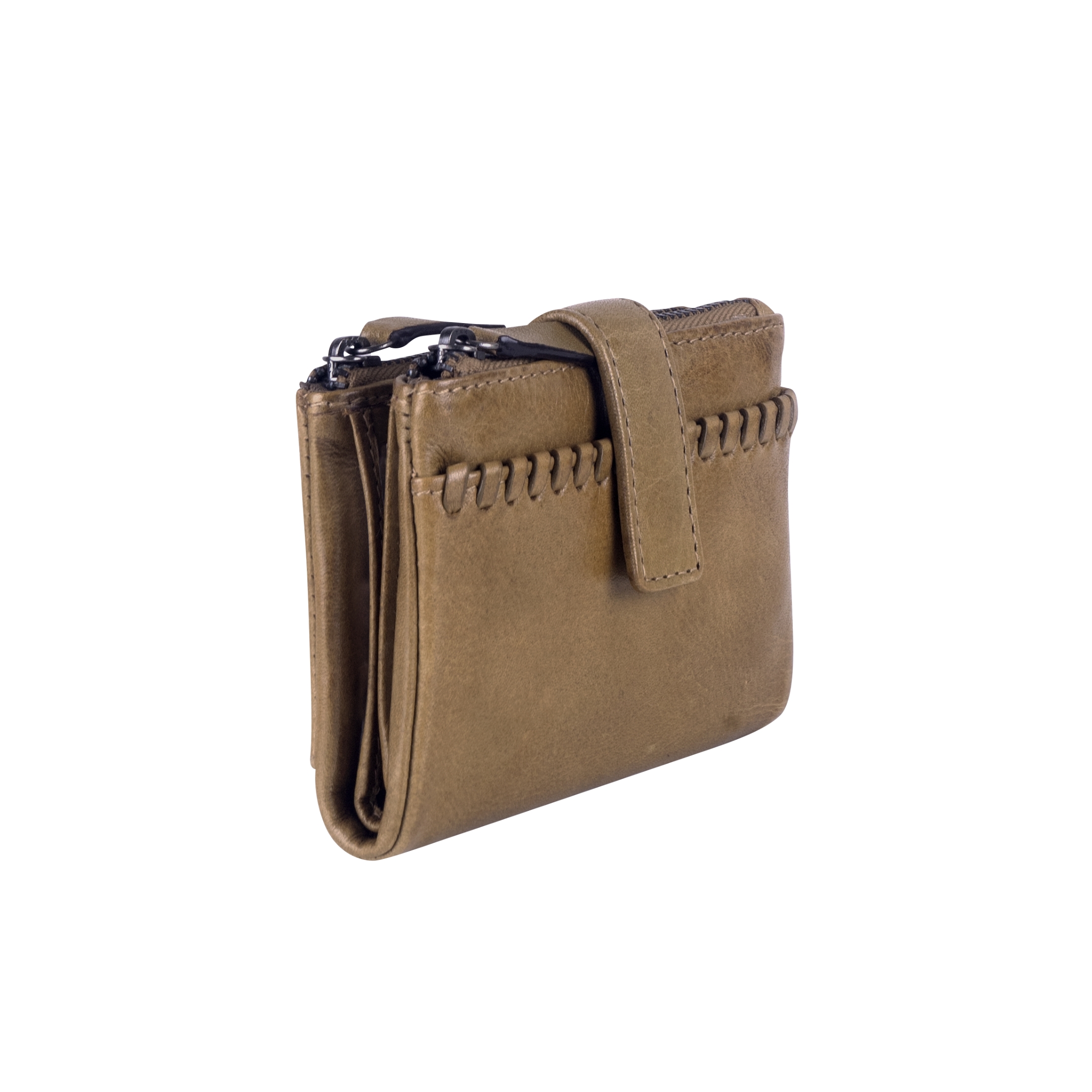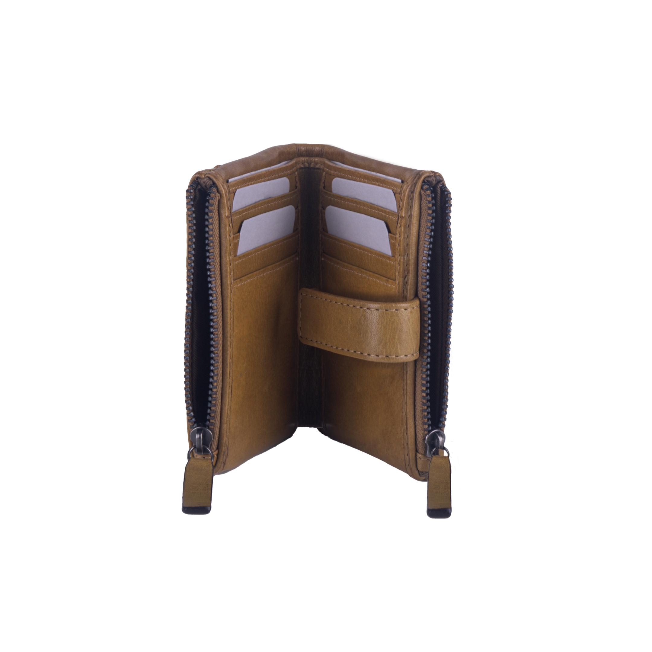 De portemonnee heeft twee ritsvakken, 8 creditcardvakjes, 3 steekvakken en 2 briefgeldvakken.