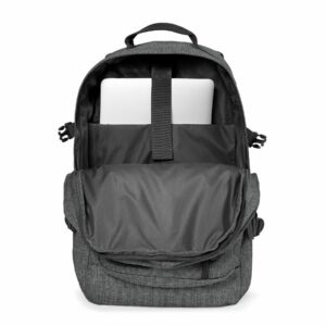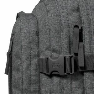 Rugtas van het merk EASTPAK, twee hoofdvakken afsluitbaar met rits, voorvak met rits en diverse vakjes, verstevigde verstelbare schouderbanden met borstriempje, laptopvak voor de meeste laptops tot 15 inch, flessenhouder aan de zijkant, klikkers aan de zijkant om iets tussen te klemmen of de tas groter of juist kleiner te maken en gemaakt van 100% polyester.