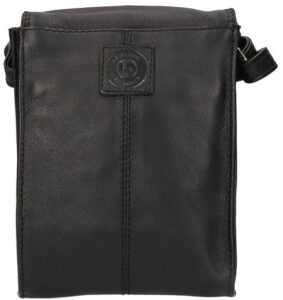 Lederen zwarte damestas van het merk LEATHER DESIGN met een klep waaronder 3 vakken zitten met daarin diverse kleine vakken en ritsen en een verstelbare schouderband.