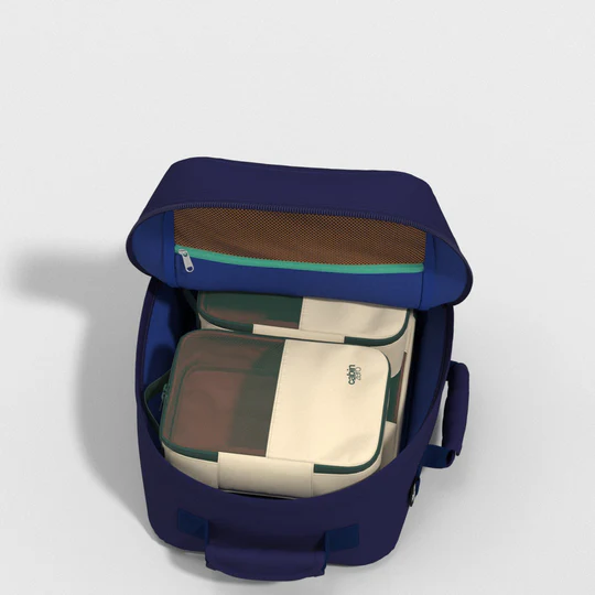 Deze ruime rugtas, die ook te gebruiken is als underseat in het vliegtuig, van het merkt CABINZERO, kan als rugtas zowel als handtas gedragen worden. Ook heeft deze rugtas de Classic 28 liter in de kleur deep ocean een paar vakken aan de binnenkant van de tas voor extra gemak, plus een laptopvak. Deze rugtas kan gratis mee in het vliegtuig omdat deze bij de voeten kan staan.