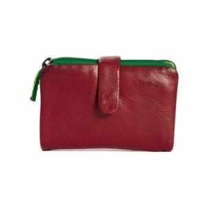 Damesportemonnee van het merk STICKSANDSTONES, afsluitbaar met een leder lipje met een drukker, ruimte voor briefgeld, een uitneembare etui waar ook muntjes in kunnen, katoenen voering in leuke contrastkleur en ruimte voor meerdere passen.