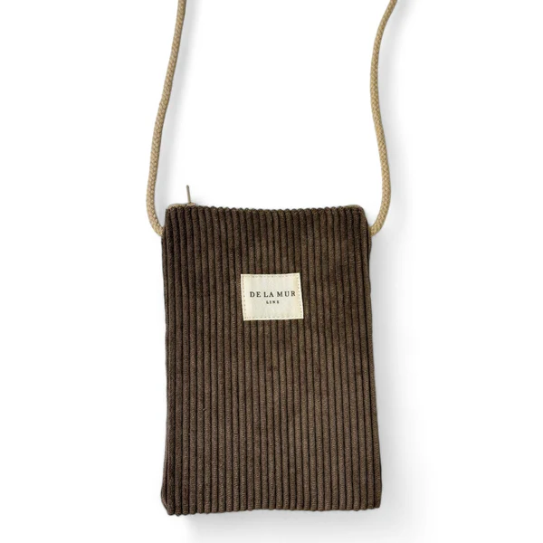 Dit leuke telefoontasje van DE LA MUR is uitgevoerd in een bruine ribstof.