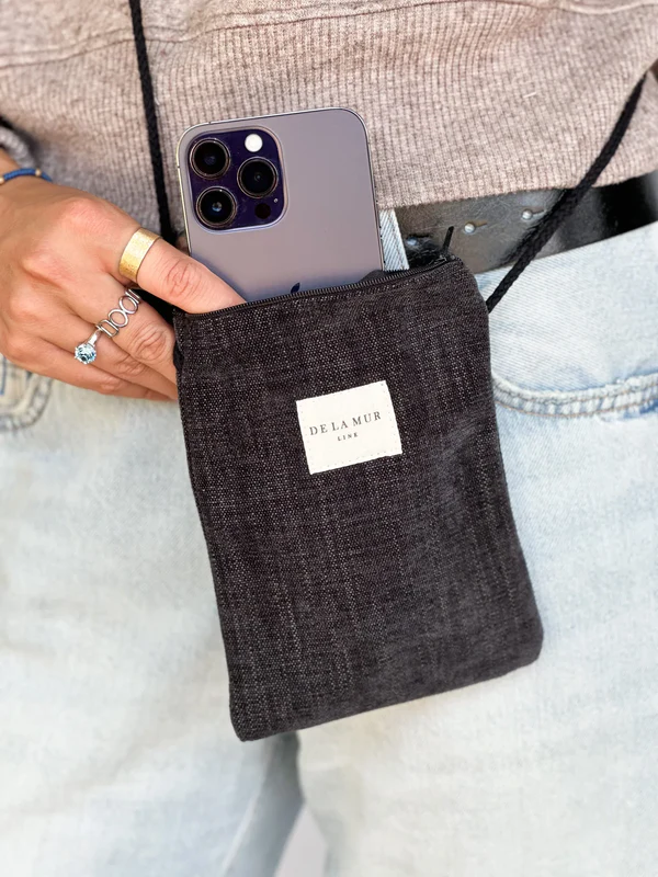 Dit leuke telefoontasje van DE LA MUR is uitgevoerd in een hele zachte stof.
